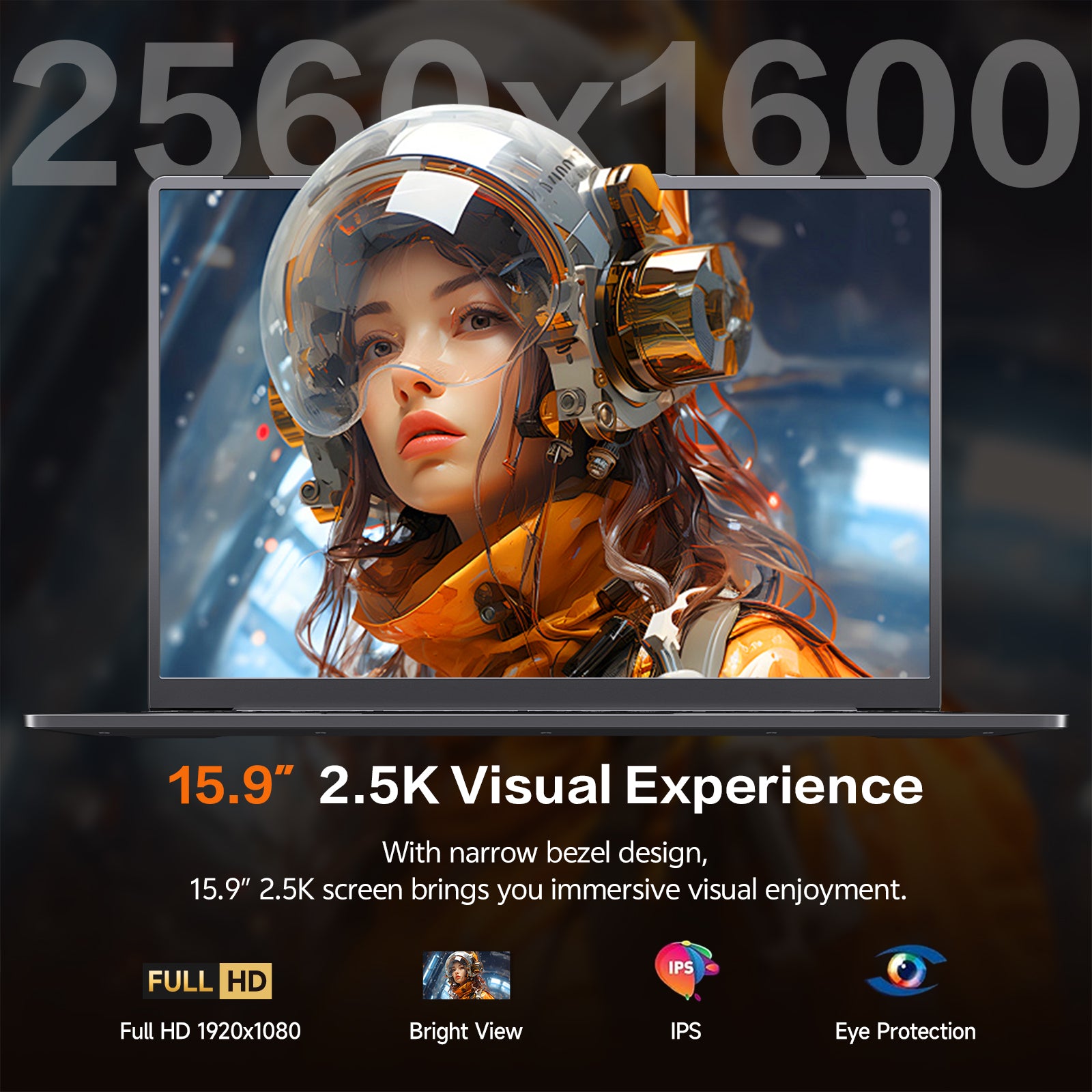 RNRUO 15.9" Gaming Laptop, 16GB DDR5 RAM 512GB SSD, AMD Ryzen 7 7735H, 8 Cores Up to 4.75GHz, 2560*1600 Display Fingerprint Backlit KB, WiFi6 BT5.3, Windows 11 Computer for Gaming, Business, Study