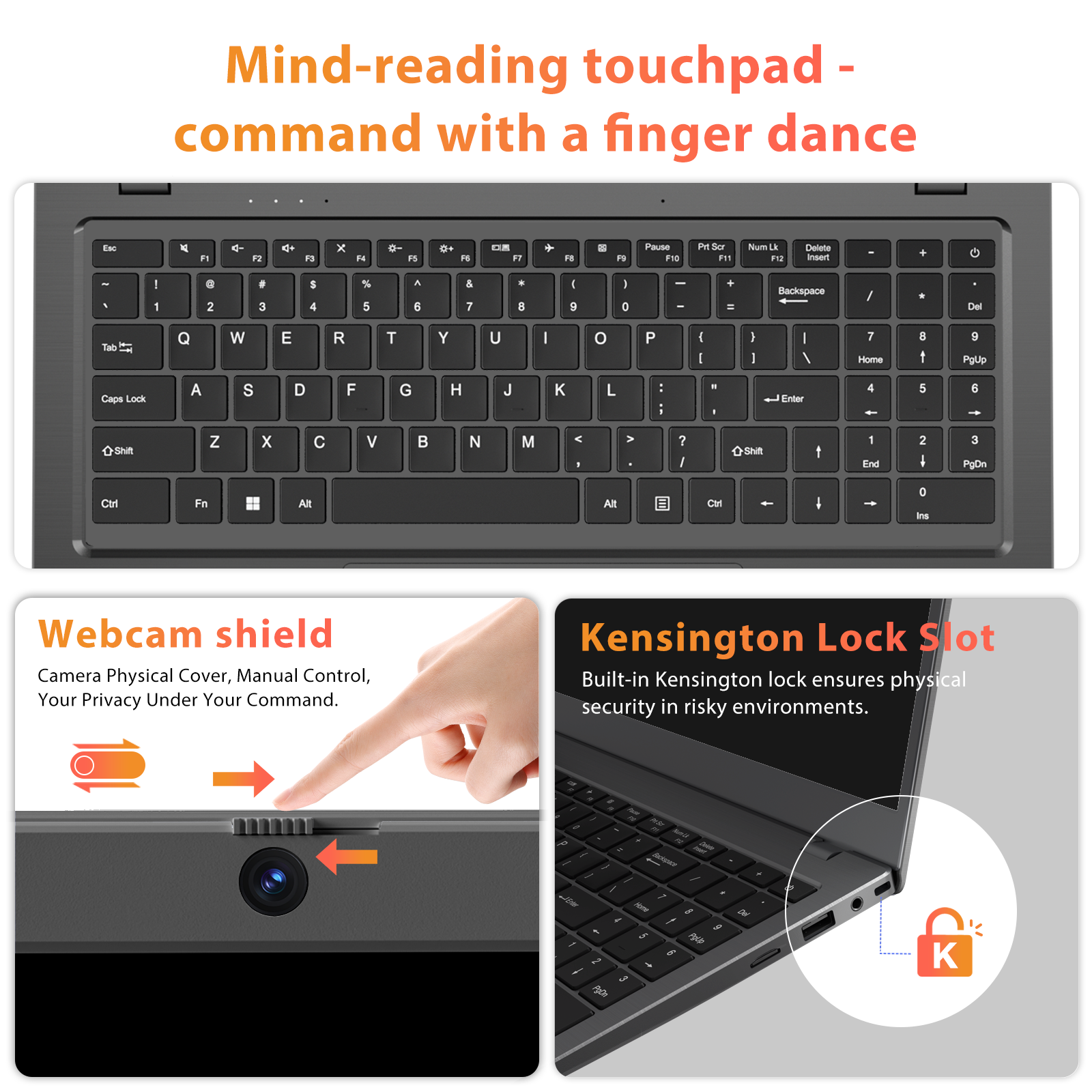 Extended Battery & Fast Charging:The 6W TDP design enables 10 hours of office use with Type-C PD fast charging (80% in 30 mins). Fanless operation (≤75°C under load) ensures silent performance, ideal for libraries or quiet spaces. Compatible with phones/tablets/headphones; one cable cuts carry load, plus bidirectional emergency power support.
