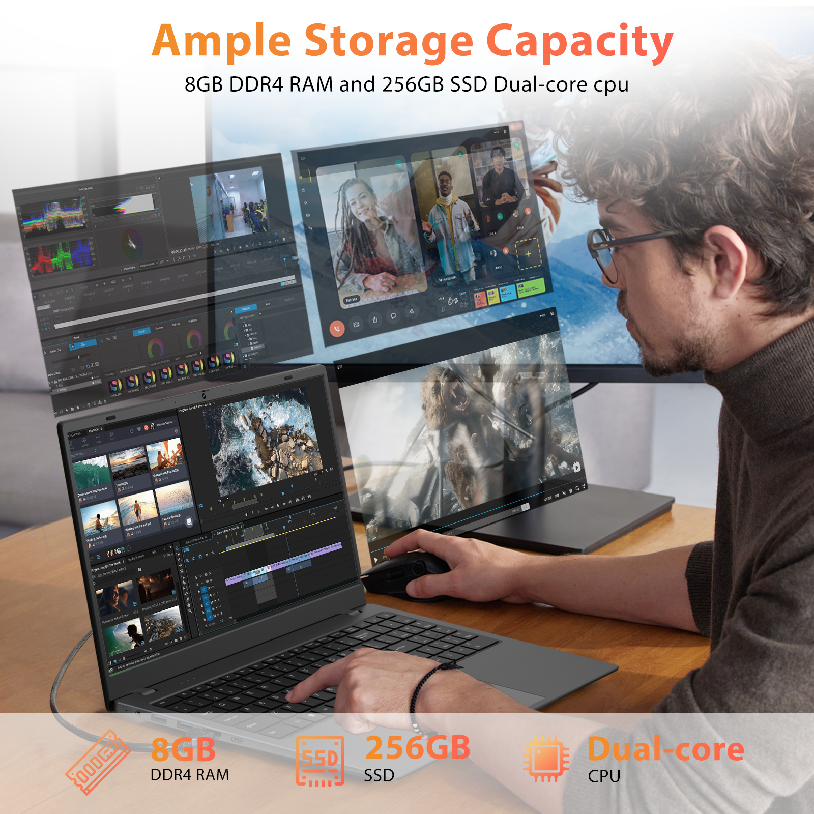 Powerful Configuration:Featuring Dual 8GB DDR4 RAM and 256GB NVMe SSD(Exp.Up to 32GB & 2TB), the computer delivers 50% faster performance than standard DDR4 systems, enabling seamless multitasking and responsive storage.